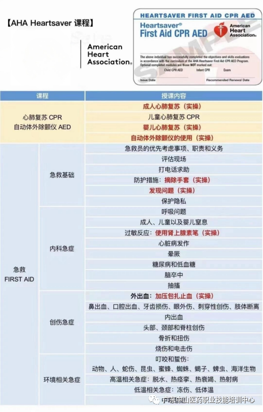 HEARTSAVER FIRST AID CPR AED证书权威性