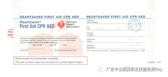 全名是HEARTSAVER FIRST AID CPR AED证书,由美国心脏协会(AHA)颁发的国际通用证书。此证书已成为全球188个国家(含中国)认可的岗位资质之一。